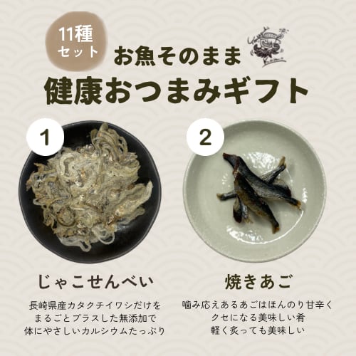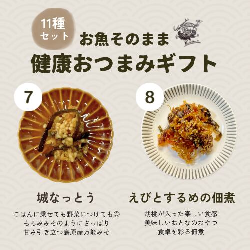 おつまみにピッタリでいつもより贅沢なおつまみ厳選11種の詰め合わせセットです。父の日や敬老の日、お中元、お歳暮など、お礼の贈り物としてご利用いただけます。ご友人や旦那さま、親御様やご家族、同僚や上司、取引先など、若い方からご年配まで幅広く喜んでいただける商品ラインナップを組んでおります。それぞれのアイテムは、こだわり抜かれた素材と味付けで初めて食べるおせんべいや佃煮を楽しんでいただけることまちかいなしです。味はもちろんですが、無添加でご用意しているおせんべいや佃煮などのおつまみも多いので、お相手の健康への配慮も心配ございません。カルシウムやミネラルたっぷりの海の幸のおつまみを、ぜひ大切な方へ贈っていただけたらと思います。